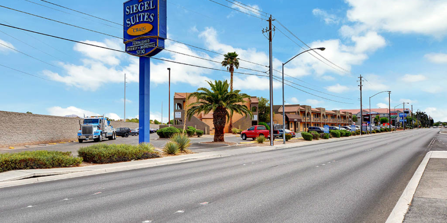 Rent at Siegel suites Craig for a furnished or unfurnished apartment with a great Las Vegas location. We are a quick drive to shopping at stores such as Walmart, the 99 Cents only store and Smith’s. Additionally, we are walking distance to many restaurants. Some of these dining options include Roberto’s Taco Shop, McDonald’s, and Del Taco. Additionally, Nellis Airforce Base is only 1 mile away and Las Vegas Motor Speedway is only 4 miles away!